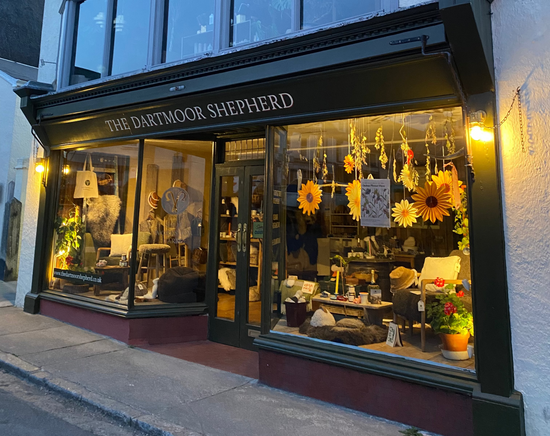 Our sheepskins are then tanned in Britain’s oldest tannery on Dartmoor, before returning to our on farm workshop. Our products are then handcrafted in our workshop in the centre of Chagford on Dartmoor, where Bethan, Jenny and Chloe stitch our sheepskin products in the back of our shop. This gives our products full traceability and cuts our production distance from miles to yards. We value origin and the environment above all else from the farming in fields right through to our finished products.